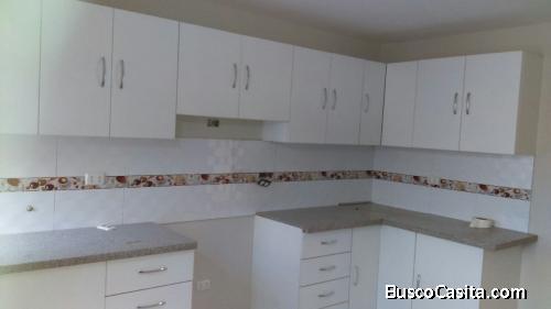 Amplia Cocina con reposteros altos y bajos.