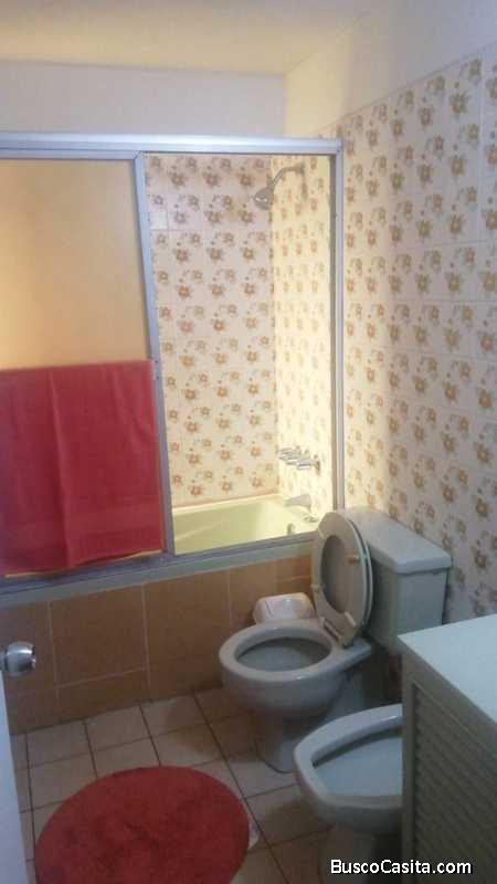 - Baño principal amplio, cuenta con espejo, ducha tipo tina, lavabo con repostero en su parte baja. Inodoro y bidet