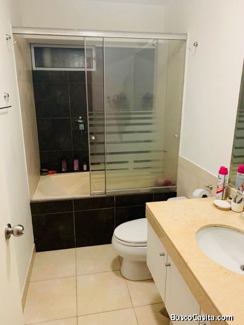 El departamento tiene dos dormitorios principales con Walk in Closet y baño privado. Amplia e iluminada sala comedor, cocina con acabado de granito, muebles altos y bajos, buena distribución, baño de visita, vista externa.
