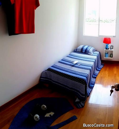 Vendo departamento moderno con tres dormitorios mas un dormitorio de servicio con baño. Sala comedor con terraza balcon, cocina amoblada con lavanderia, dos baños completos con, dos cocheras. El condominio cuenta con areas sociales comunes: zona de parrillas, gimnasio, sauna.