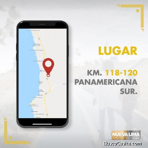 Buenas tardes mis amigos Inversionistas, Empresarios, Comerciantes, Profesionales de las diversas áreas, Colegas y Publico en general , Hoy les presento este hermoso Megaproyecto Inmobiliario Urbano, que lleva como nombre LA NUEVA LIMA (la primera ciudad tecnoecologica del Perú), se encuentra Ubicado , aquí muy cerca de nuestra Lima Clásica, en los Kmts 117 - 120 de la Panamericana Sur, en plena Panamericana , como ven tiene Tres Kilómetros de frontera que le permite disfrutar entre otras bondades, de 03 Playas Publicas, como son EL MISTERIO EL EMBARCADERO CHEPECONDE , se encuentra Ubicada finalizando el Distrito de Asia y comenzando el Distrito de Cerro Azul, tiene como Área Total 1,480 Hectáreas !! para el disfrute de sus Propietarios y familiares, es y sera una Nueva Ciudad, con Urbanizaciones, Condominios, Zonas Empresariales, Comerciales, Agro- Industriales, Deportivas ( Estadio Olimpik Center) Recreativas ( Lima Land / Parque de Diversiones ), Educacionales ( Universidades, Institutos, Academias, Colegios, etc) de Salud ( Clínicas, Consultorios, Postas ), Mercado Mayorista , Centros Comerciales, Comisarias, Cia. de Bomberos, Entidades Publicas y Privadas., etc.... lo mas importante el Inversionista, es decir el que adquiere Su Terreno, lo hace con total y absoluta Seguridad en su Inversión ,ya que los Terrenos son de PROPIEDAD PRIVADA, y están Saneados, Independizados e Inscritos en los Registros Públicos SUNARP, como Único y real Propietario, les pertenece a la CORPORACION ZOLLA SAC, mayores detalles, de los Lotes Disponibles, las Urbanizaciones que tenemos, las Zonas Comerciales que estamos VENDIENDO, pueden Contactarse con nosotros, estamos a su disposición para asesorarlos, Servirlos y hacer que su Sueño, su meta su anhelo de Ser Un Propietario mas de los 2,000 que Somos en la actualidad, se logre CONCRETAR para el disfrute de Ud y su familia !!!..... Proyecto Inmobiliario Urbano LA NUEVA LIMA ..Un nuevo concepto de Vivir con Calidad ,Bienestar , Seguridad y en Felicidad !!!