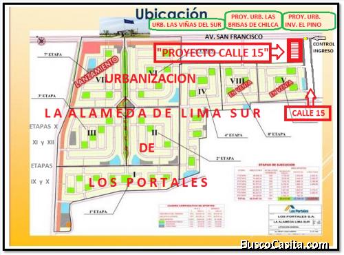 El “Proyecto Inmobiliario CALLE 15” es privado e independiente. Todos nuestros Lotes cuentan con amplios jardines frente a su ingreso, tipo casas americanas, únicos en toda la zona. Ubicados en el corazón de la Nueva y más exclusiva zona de Chilca. A 1 km de la Plaza Mayor y 1.5 de la Playa.