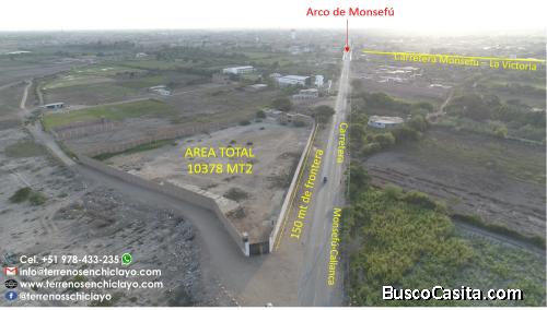 Excelente terreno con una ubicación estratégica con 150mt de frontera a la carretera Monsefu-Chiclayo a 15 minutos dela ciudad de Chiclayo, ingresando por la carretera Panamericana Norte, pasando La estancia y villa Montano, a unos 500 metros antes de llegar al Arco de Monsefu,