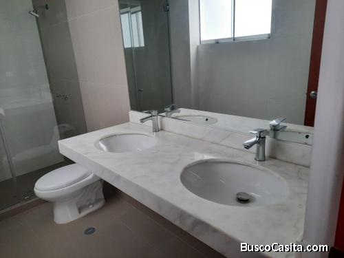 Tiene dos dormitorios, el principal con baño incorporado, un baño adicional y baño de visita. Los dormitorios con closets, sala comedor amplio y iluminado. Dos terrazas y jardín con parrilla. Cocina amplia con reposteros altos y bajos, mesada de granito, cuarto y baño de servicios y dos cocheras de líneas abiertas.