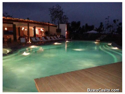 Tiene áreas comunes como: piscina, jacuzzi, Club House, cancha de tenis, juegos para niños, casita para niños, 2 parrillas, Laguna, huerto entre otros...