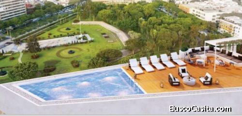 Edificio con amplias áreas comunes : Lobby de ingreso, sala bar, game zone, piscina, terraza, fitness center, grill ; lounge